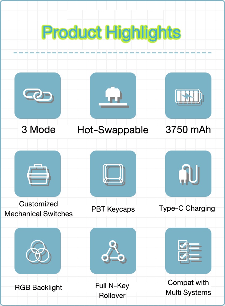คีย์บอร์ด สายถอดได้ + ไร้สาย RGB 68 คีย์ Hot-swap
